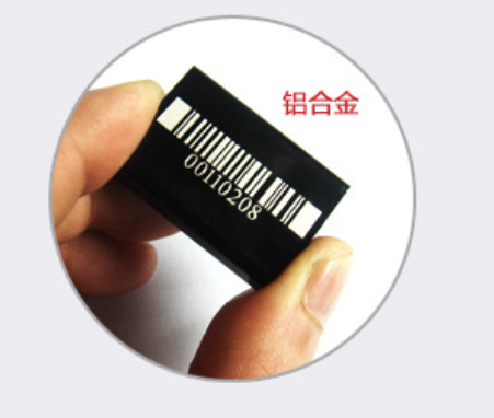 采用激光镭射,适合在浅色塑料产品表面打印出黑色的LOGO,流水号及各样复杂内容,但是深色(如蓝色、红色等)不建议激光打印。在铝合金表面打印为白色字体,相比烫印,激光打印没有凹凸感。如下图。
