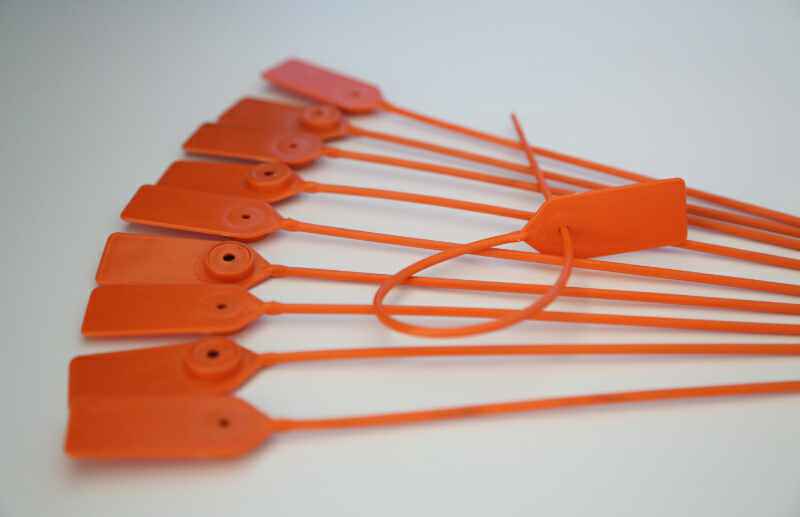 铅封中使用量多的可谓是塑料封条了,塑料封条又称扎线带、束线带,按材质划分,塑料封条一般可分为尼龙封条、不锈钢封条、喷塑不锈钢封条;按功能划分种类繁多,有普通封条、可退式封条、标牌封条、固定锁式封条、插销式封条、重拉力封条等等。