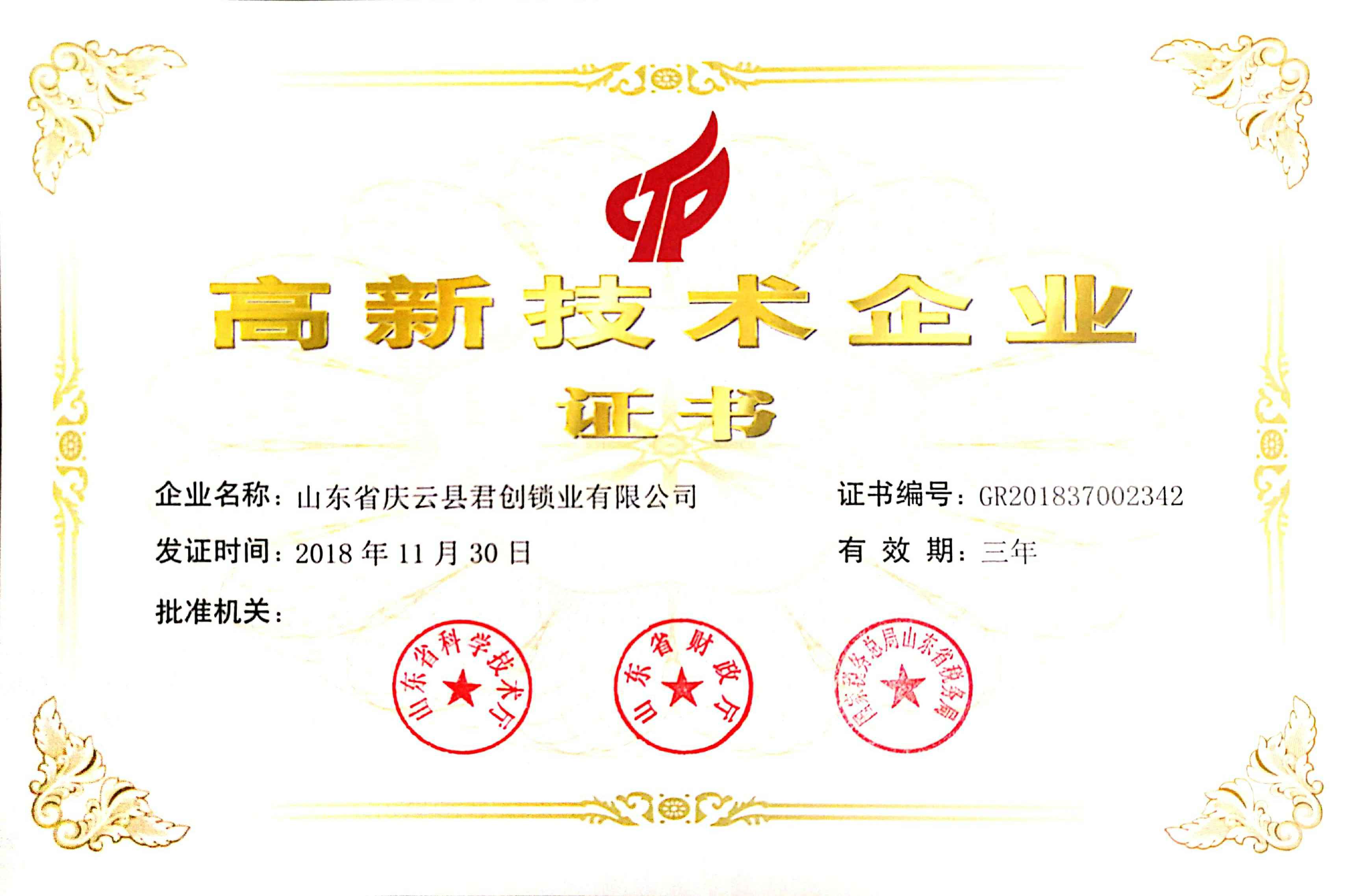 近日,星空体育页面官方网站-星空(中国)喜迎佳音,获得了“国家高新技术企业证书”。这是星空体育页面官方网站-星空(中国)继获得山东省产品质量奖、德州市信用民营企业、等荣誉后获得的一项新的荣誉。
